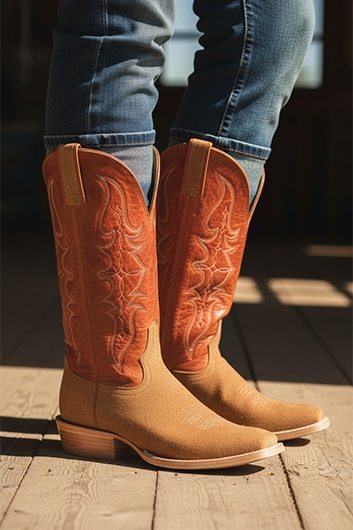 • Premium Roughout Leather: Constructed from high-quality roughout leather, these boots are durable and develop character over time, offering an authentic Western look that only improves with wear.