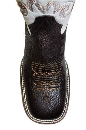 Dark brown vamp with white shaft and brown inlay design